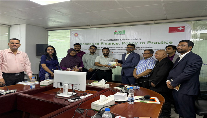 অর্থায়নের সুযোগ নীতি থেকে প্রয়োগ’ শীর্ষক এ গোলটেবিল বৈঠক আয়োজন করে এসএমই ফাউন্ডেশন। স্থানীয় সরকার বিভাগ, সুইসকন্টাক্ট ও ইনোভিশন কনসাল্টিং এতে সহায়তা করে। বৈঠকে উদ্যোক্তা, ব্যাংকার, নীতিনির্ধারক ও উন্নয়ন সহযোগী সংস্থার প্রতিনিধিরা অংশ নেন।