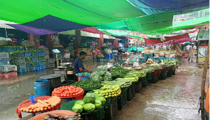 বাজারে ক্রেতা কম থাকার কথা জানিয়েছেন আবদুল্লাহ আল মামুন নামের এক বেসরকারি চাকরিজীবী, যিনি বৃষ্টির মধ্যেও বাড়ির প্রয়োজন মেটাতে সবজি কিনতে বাজারে এসেছেন।
