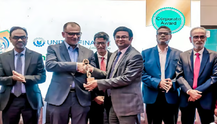 প্রতিবেদক: চট্টগ্রাম বিশ্ববিদ্যালয় আয়োজিত আন্তর্জাতিক সম্মেলন ‘দ্য ফিউচার অব বিজনেস: ইনোভেশন, টেকনোলজি অ্যান্ড সাসটেইনেবিলিটি’–এ ফাইন্যান্সিং ক্যাটাগরিতে সম্মানজনক করপোরেট অ্যাওয়ার্ড পেয়েছে ইউনাইটেড ফাইন্যান্স পিএলসি। সম্মেলনের আয়োজন করে বিশ্ববিদ্যালয়ের ব্যবসায় প্রশাসন অনুষদের ব্যুরো অব বিজনেস রিসার্চ।