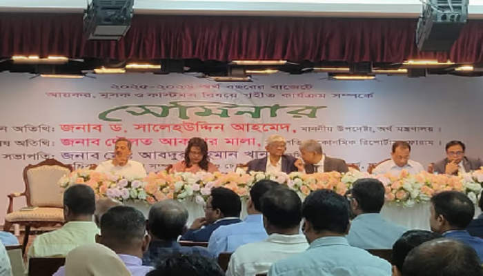 সোমবার (৫ আগস্ট) রাজধানীর আগারগাঁওয়ে জাতীয় রাজস্ব বোর্ড (এনবিআর) কার্যালয়ে এক সেমিনারে তিনি এসব কথা বলেন। আয়কর, ভ্যাট ও কাস্টমস সংশ্লিষ্ট বাজেটের পরিবর্তনগুলো তুলে ধরতেই এ সেমিনার আয়োজন করে এনবিআর।