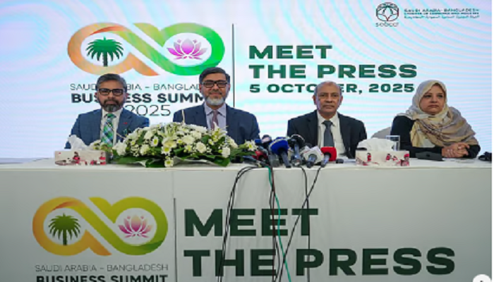 প্রতিবেদক: ঢাকায় সৌদি-বাংলাদেশ ব্যবসা সম্মেলনকে ঘিরে তিন দিনব্যাপী অনুষ্ঠান আয়োজন করা হয়েছে ৬ থেকে ৮ অক্টোবর পর্যন্ত। রোববার রাজধানীর গুলশানের সিটি ব্যাংক সেন্টারে আয়োজিত সংবাদ সম্মেলনে এসব তথ্য জানান সদ্য গঠিত সৌদি-বাংলাদেশ চেম্বার অব কমার্স অ্যান্ড ইন্ডাস্ট্রি (এসএবিসিসিআই)–এর সভাপতি আশরাফুল হক চৌধুরী। সংবাদ সম্মেলনে সংগঠনের সহসভাপতি আহমেদ ইউসুফ ওয়ালিদ, পরিচালক উজমা চৌধুরী ও মেসবাউল আসিফ সিদ্দিকী উপস্থিত ছিলেন।